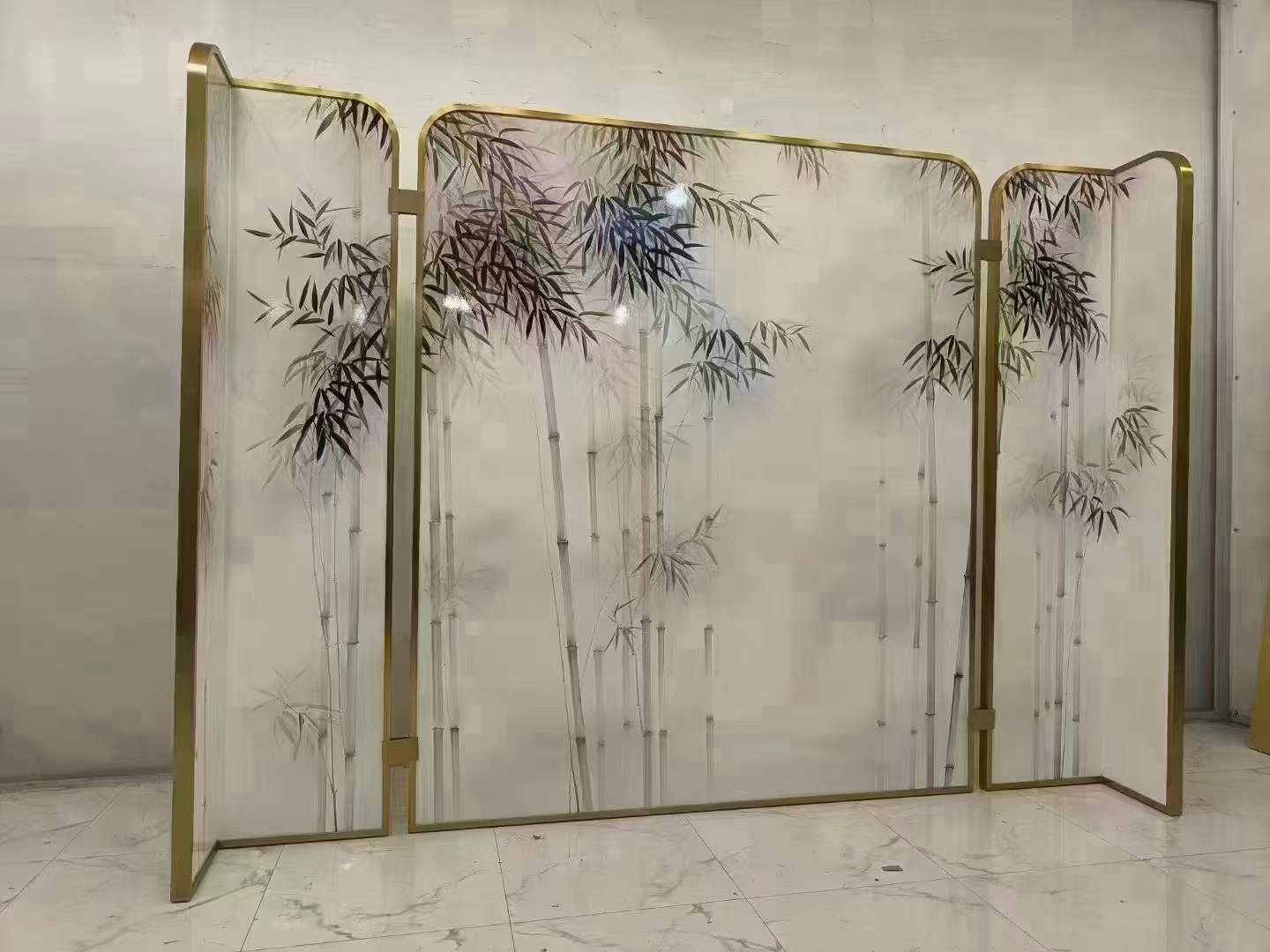 夹丝水墨画玻璃是近年新流行的高端夹丝玻璃,采用超白钢化玻璃加上设计印刷后的绢丝和EVA胶片通过专业设备热压融合在一起,因夹丝夹胶玻璃安全,破碎不伤人的特性,在装饰行业大受欢迎,本公司生产夹丝玻璃有多年的行业经验,有专业的设计安装团队,可根据客户需要设计各种图案,客户也可以来图定制夹丝玻璃。